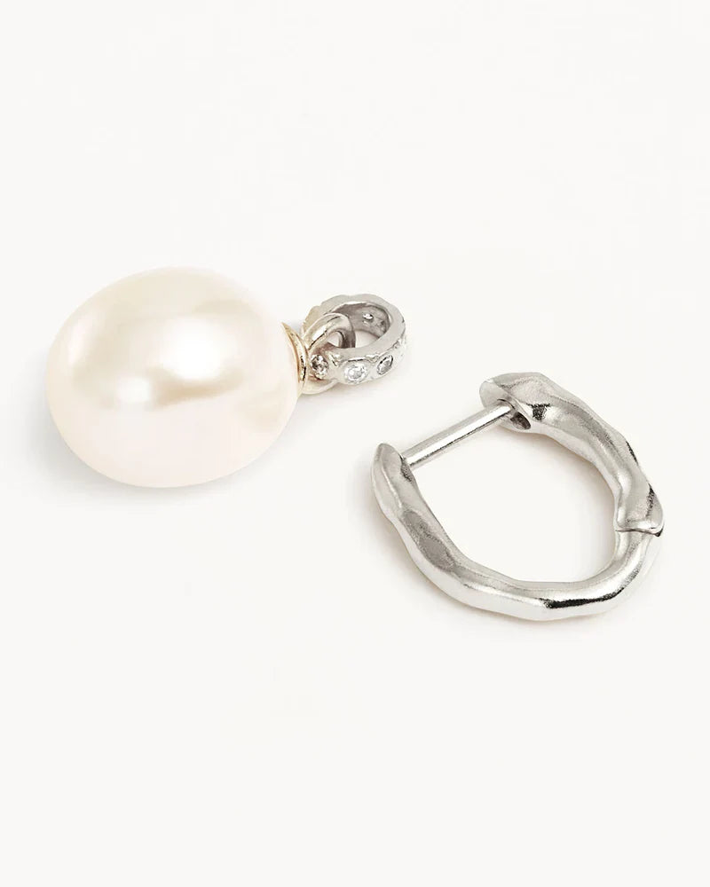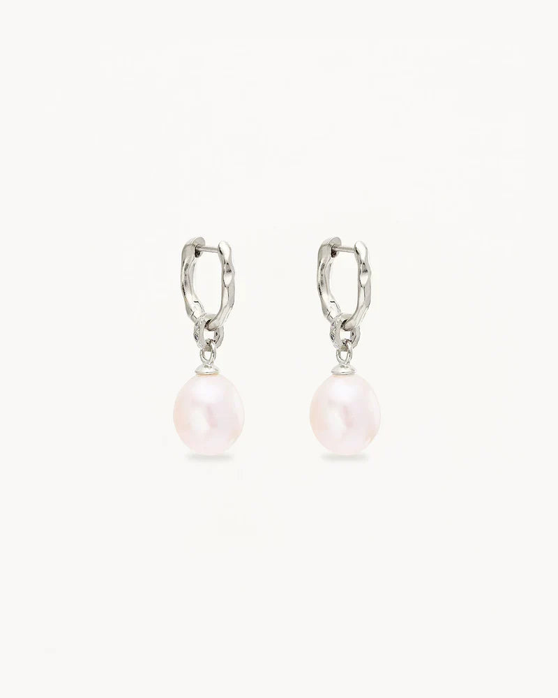 BY CHARLOTTE | EMBRACE STILLNESS PEARL HOOPS - SILVER