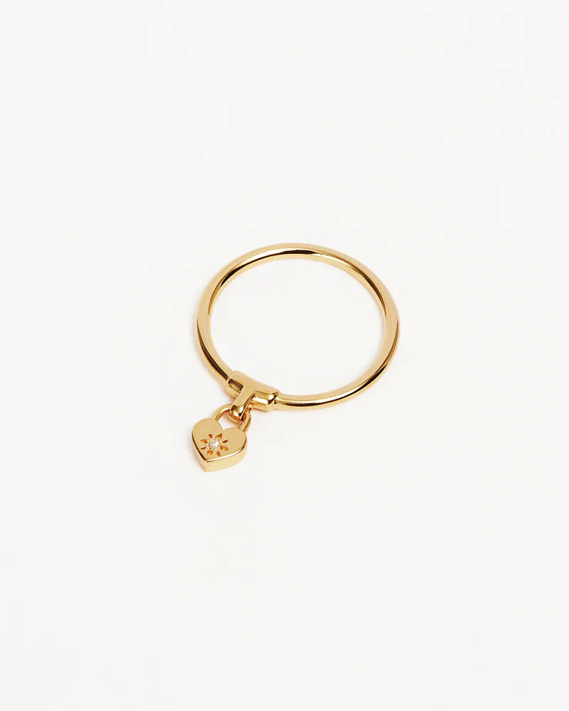 BY CHARLOTTE | GOLD CRYSTAL LOTUS HEART PADLOCK RING